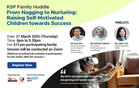 Date: 27 March 2025 (Thursday) Time: 8pm to 9.30pm Session will be conducted on Zoom Fee: $15 per participating family Refund policy: No refund (Webinar recording link available to participants for two weeks after the session.)